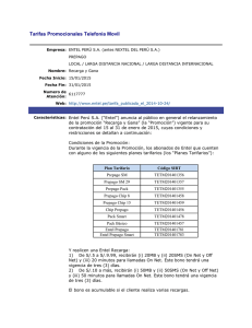Tarifas Establecidas Telefonia Movil Empresa: ENTEL PERÚ S.A.