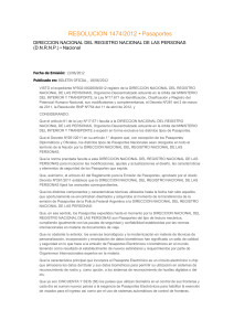 RESOLUCION 1474/2012 • Pasaportes