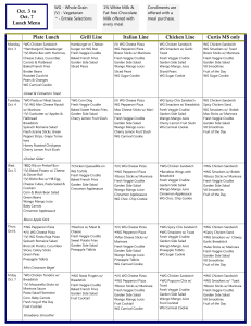 Oct. 3 to Oct. 7 Lunch Menu Plate Lunch Grill Line Italian