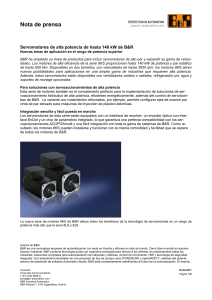 Nota de prensa Servomotores de alta potencia de hasta 140 kW de
