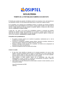NOTA DE PRENSA OSIPTEL SUPERVISARÁ REGISTRO DE