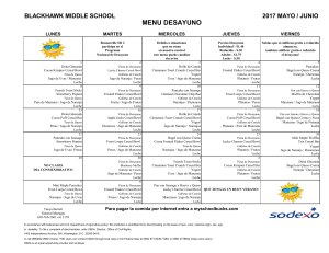 Menu del desayuno Escuela Primaria
