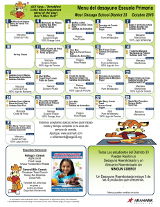 Menú del Desayuno para las Escuelas Primarias