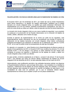 Acuerdo permite a los bancos extender plazo para la implementar