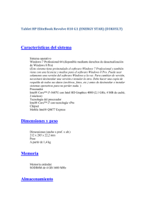 Características del sistema Dimensiones y peso Memoria