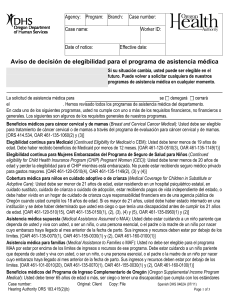 Aviso de decisión de elegibilidad para el programa de asistencia