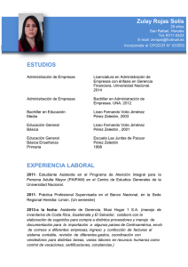 ESTUDIOS EXPERIENCIA LABORAL Zulay Rojas Solís Incorporada