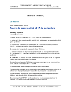 Precio de arroz subirá el 17 de setiembre