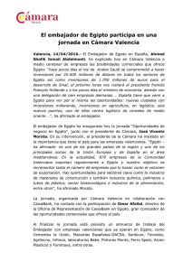 El embajador de Egipto participa en una jornada en Cámara Valencia