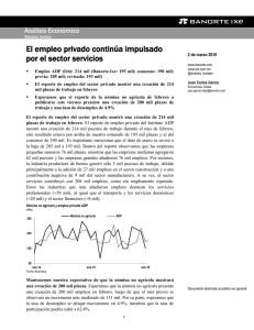 El empleo privado continúa impulsado por el sector servicios
