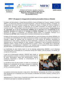 MIFIC Y UE apoyan la inauguración de planta procesadora láctea