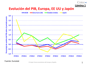 Evolución del PIB, Europa, EE UU y Japón