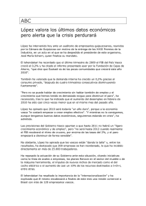 López valora los últimos datos económicos pero alerta que