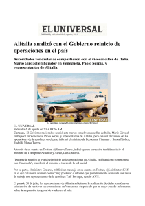 Alitalia analizó con el Gobierno reinicio de operaciones en el país