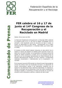 31/03/2016 FER celebra el 16 y 17 de junio el 14º Congreso de la