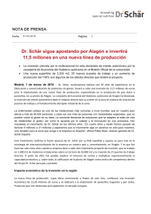 Dr. Schär sigue apostando por Alagón e invertirá 11,5 millones en