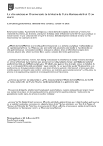 La Vila celebrará el 15 aniversario de la Mostra de Cuina Marinera