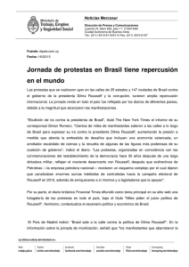 Jornada de protestas en Brasil tiene repercusión en el mundo