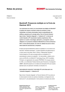 Beckhoff: Presencia múltiple en la Feria de Hanóver 2013