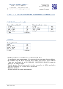 TARIFAS EN REALIZACION DE CERTIFICADOS DE EFICIENCIA