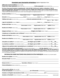 Formulario para Inscripción de Bautismo Baptism Registration Form