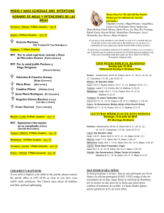 weekly mass schedule and intentions horario de misas y