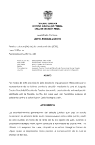 Radicado: 660016000058 2005 01380 Indiciado: Rubén Darío