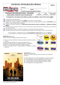 Prova de Recuperação do primeiro colegial