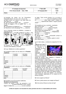 3ª Avaliação de Espanhol Prof: Simone Buralli Data: 14/08 1ª Série